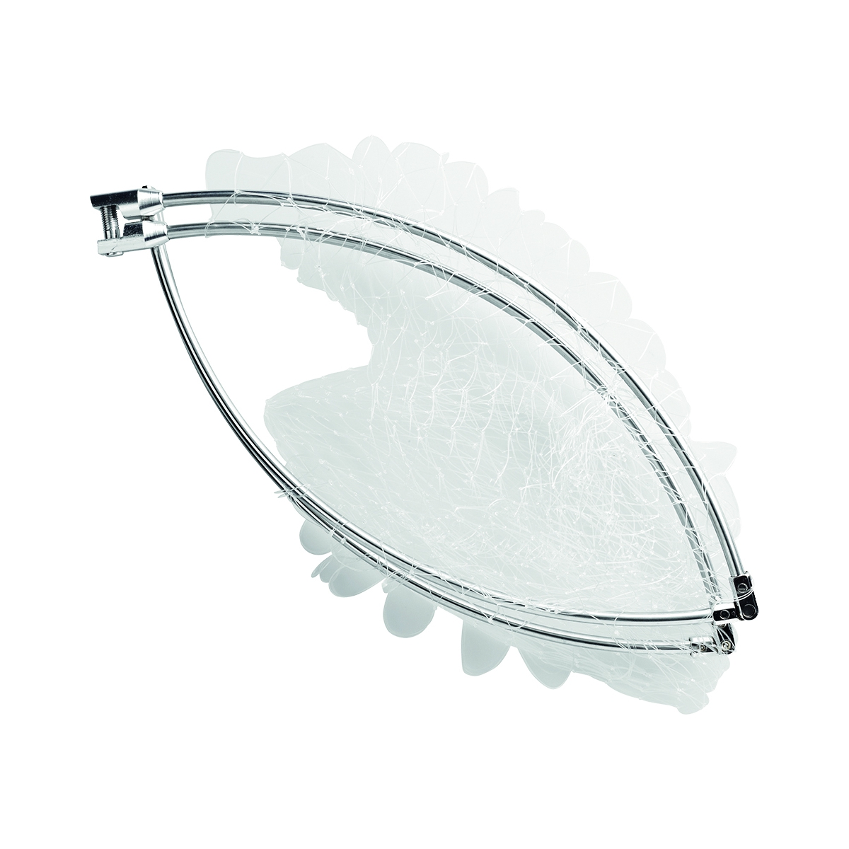 -Cabeça de camaroeiro dobrável em 4 para transportar, adequada ao cabo ISO. Rede em nylon transparente;