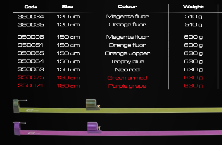 | Size | 1.20 MT. Magenta fluor -, 1.20 MT. Orange fluor -, 1.50 MT. Green armed -, 1.50 MT. Magenta fluor -, 1.50 MT. Neo red -, 1.50 MT. Orange copper -, 1.50 MT. Orange fluor -, 1.50 MT. Purple grape -, 1.50 MT. Trophy blue – |
